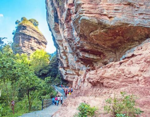 撑腰岩在罗汉岩景区内,据说此处以前人们爬山途中在此休息祈求保佑,然后继续登山,也有说法此处有疗伤养生之功效,故名。这里山势险峻,风景不错,只是还不算高,眺望远处视野受限。