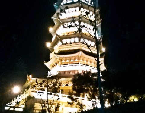 夜晚玩的话非常好,春天啊,夏天啊都可以,塔上好凉快