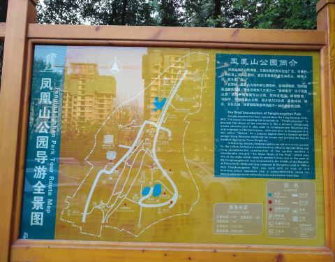 以前是位于广元城东一座不算高的山,随着城市的发展,现在已被新老城区所包围了。免费开放,也顺理成章成为广元市民休闲散步的好去处。山上最具代表性的建筑就是凤凰楼,在广元火车站站前老远就能看见。公园在北、西、南面都有大门,登上山顶最近是在老城市中心蜀门市场对面进入,顺着台阶步行十来分钟就可以到,但部分设施维护得不太好,有些旧了。