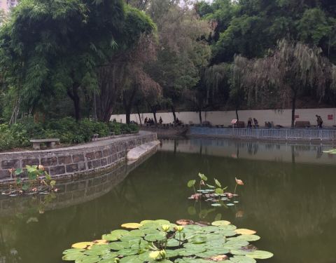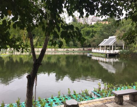 ...树木茂盛花草盛开 湖里鱼儿畅游 水质不好 设施维护管理不到位 乘凉散步空气不错 是晨练的好地方