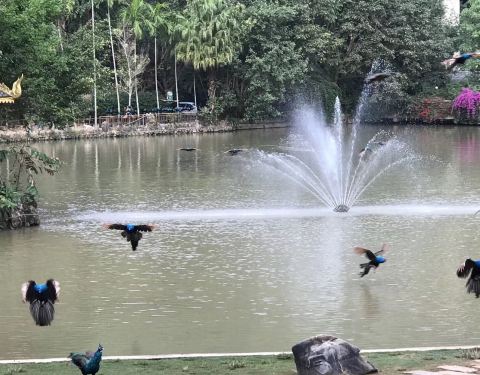 当然,一定要运气好,不要碰到下雨哈,因为雨天孔雀的翅膀粘湿之后,那就飞不起来了在热带雨林中,有一片孔雀放飞的地方。每天,一到时刻,众多的孔雀在此放飞。 当然,一定要运气好,不要碰到下雨哈,因为雨天孔雀的翅膀粘湿之后,那就飞不起来了。