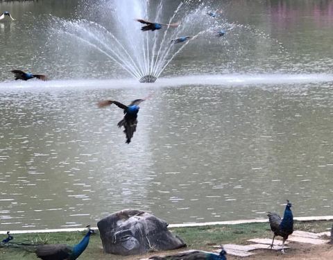 孔雀放飞翩翩舞,一群一群翔草坪,争奇斗艳展异彩,绿蓝白黑炫彩屏,美丽吉祥显华贵,百鸟之王好多情游西双版纳点评《孔雀山庄看彩屏》=喃木诺娜召树屯,孔雀湖畔鸳鸯情。公主阁台王子亭,凉阁亭台观美景。孔雀放飞翩翩舞,一群一群翔草坪,争奇斗艳展异彩,绿蓝白黑炫彩屏,美丽吉祥显华贵,百鸟之王好多情。