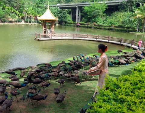 围绕那个美丽的传说改编的歌舞表演也非常精彩,随后就是数百只孔雀一起放飞,从对面的山顶越过湖面,...孔雀山庄是西双版纳原始森林公园里最大的亮点,围绕那个美丽的传说改编的歌舞表演也非常精彩,随后就是数百只孔雀一起放飞,从对面的山顶越过湖面,最后都聚集在湖边的空地上,相当壮观!
