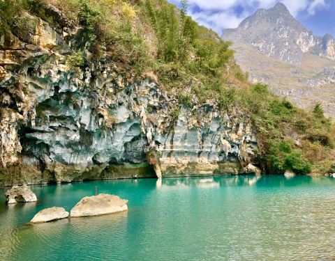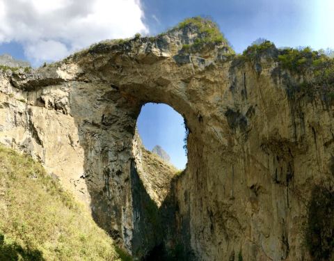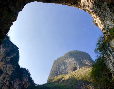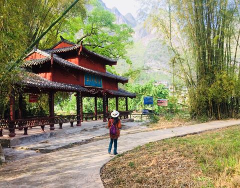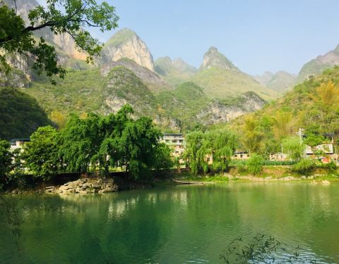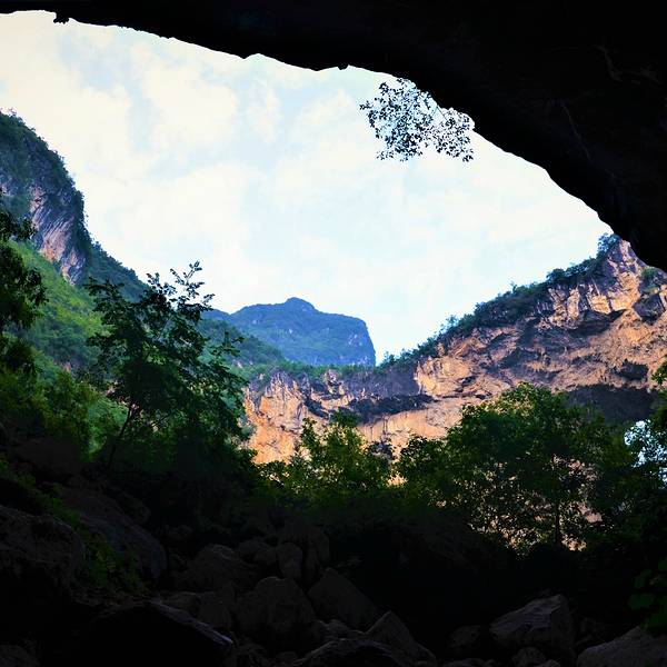 这里太让我意外了,景美,民风淳朴,还免费。去玩的亲坐单面竹筏,上岸后左右两边的溶洞都不要错过,先去右边的溶洞再去左边的响水洞,洞中有个竹筏,坐过去之后还可以爬个溶洞,环境很原始,有点刺激,增加了游玩的趣味,出洞后继续往左边下山,这样整个景区的主要景点就差不多游览完了。我们在景区住了一晚,第二天又去爬了当地人推荐的另一座山,在半山腰可以瞭望昨天游览的全景,两个溶洞就象大山张开的大嘴,爬到大半就是一个大天坑,天坑下面的一个溶洞口有座当地人供奉的寺庙。我很赞同之前网友的点评“完胜中原所有4A景区”。