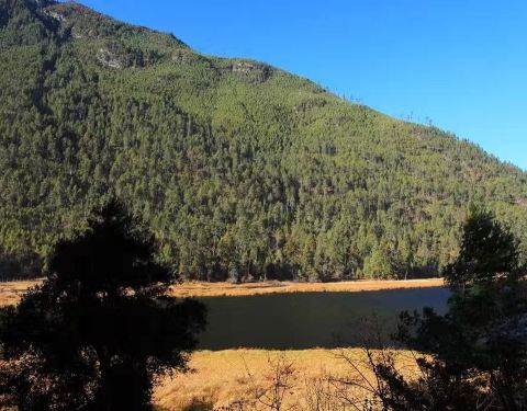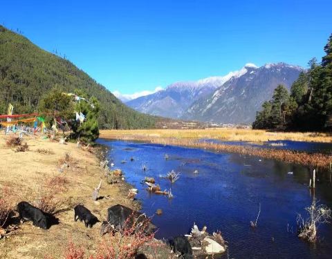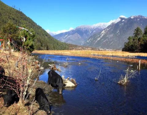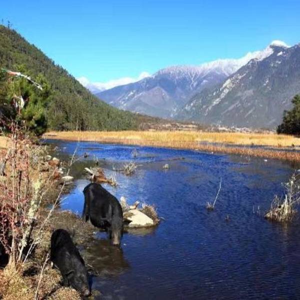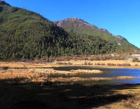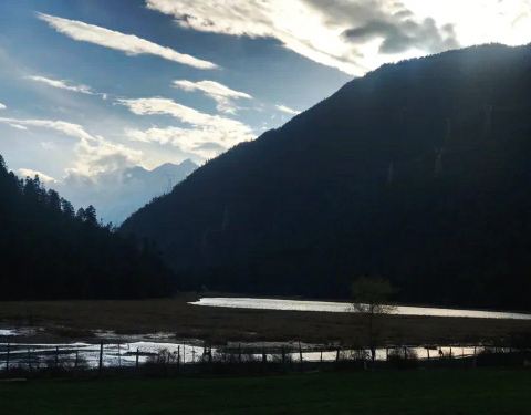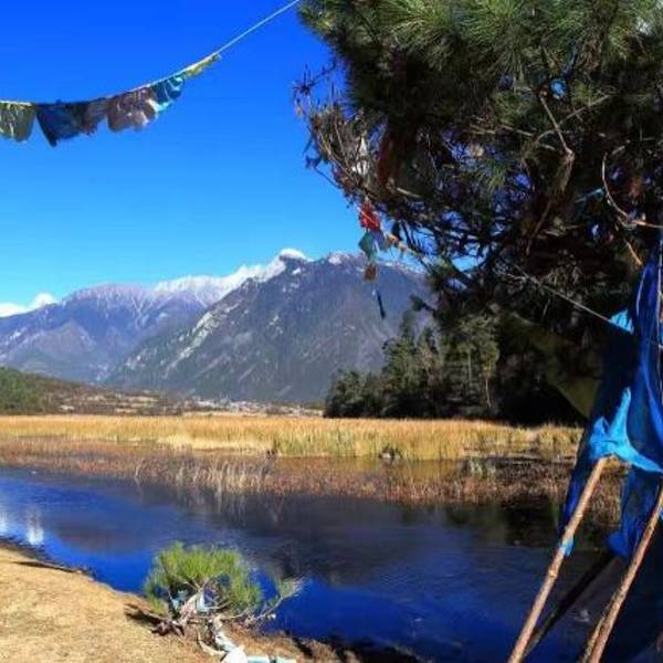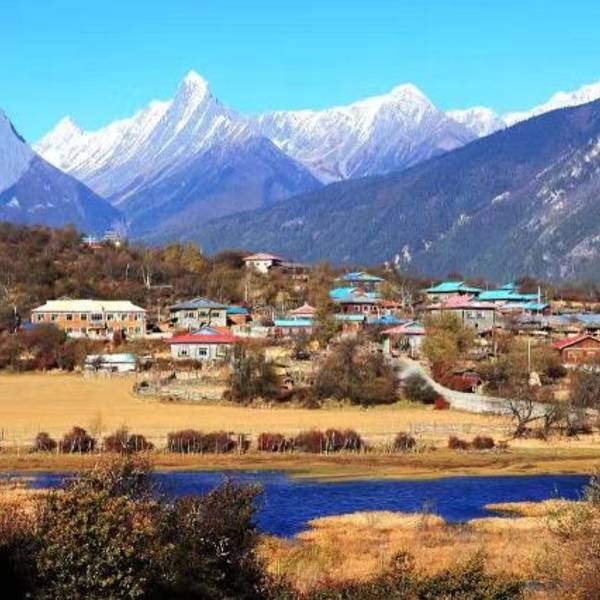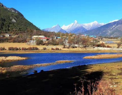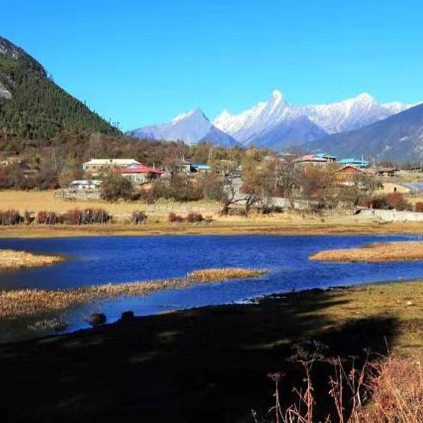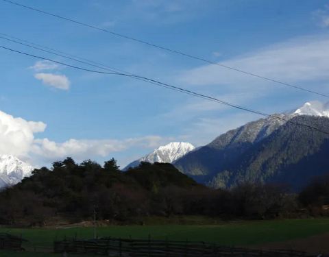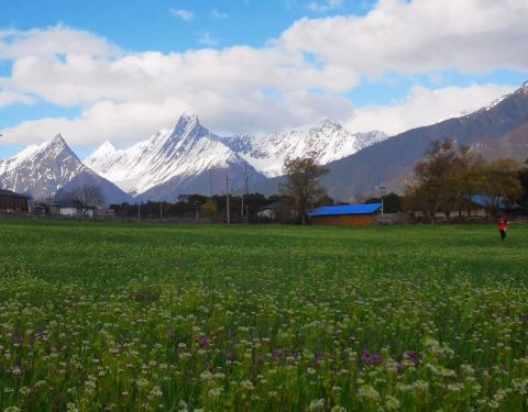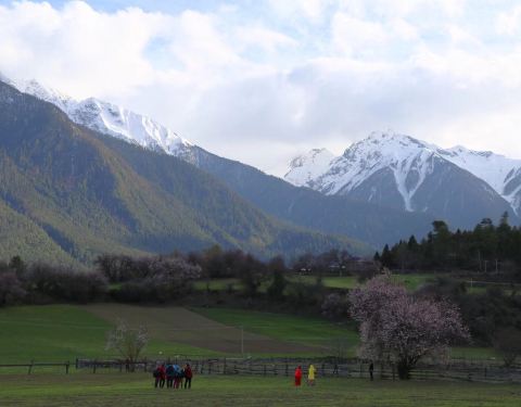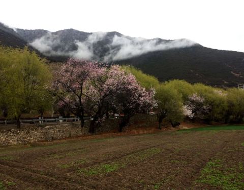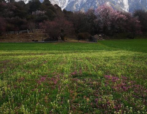 ...草覆盖,村里饱经沧桑的老桃树成林,春天的时候花开成片,和雪山湖泊相映,恍如仙境,非常漂亮的地方