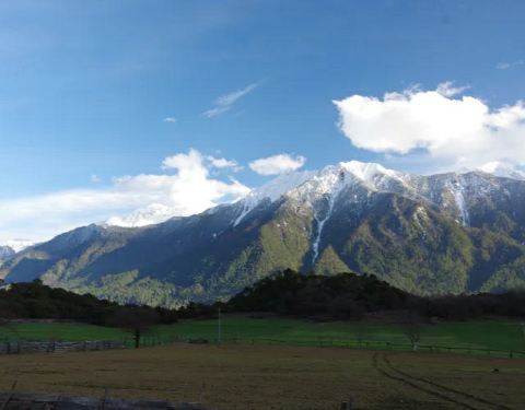 但有着更多的秀美与和谐,是一片真正的田园风光,蓝天白云下绿草成茵,雪山环抱着天然湖水,青青的麦...