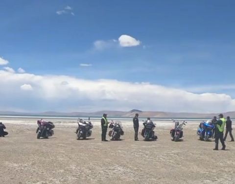 在措勤的“月亮湖”——达瓦错湖边非常美,邂逅了一队“西藏摩托之旅”, 一句话来形容一下摩托这种...