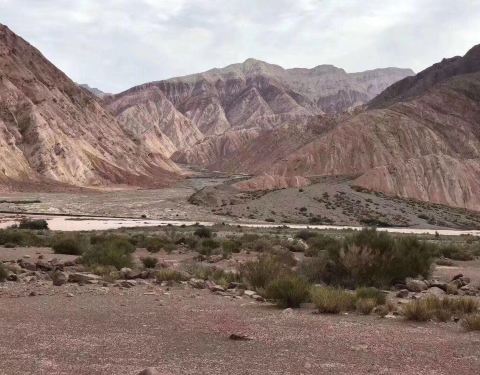 天山、昆仑山山脉在帕米尔高原上交汇,此交汇处地理特征明显。天山山脉在此处呈驼色,东西走向,分隔准噶尔、塔里木两大盆地,是亚洲高大山系之一,平均海拔4000米以上;昆仑山山脉在此处呈黛色,西起帕米尔高原,平均海拔5500米以上。在这里,可以眼望两山,脚踏两地的欣赏世界级山系独特风貌,感受“万山博物园”,体验轰轰烈烈的造山运动,属世界级自然奇观。 天山,昆仑山在新疆乌恰交汇,昆仑山为黛色,天山为红色。黄沙千里望无边,戈壁茫茫耐酷寒。红黛分明势大壮,二山交汇两重天。