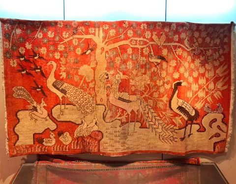 和田地毯博物馆,是一个出乎意外的惊喜。 博物馆不大,但馆内珍藏了很多精美的地毯,门票免费,登记即可进入。 图1,用在和田尼雅遗址出土的、著名的“五星出东方利中国”的汉代织锦护臂的图案,织成的精美地毯。...