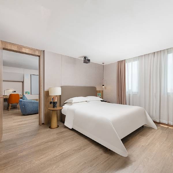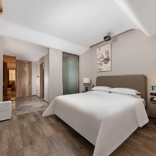 入住湛江金沙湾万达广场阿拉云酒店轻奢品牌一线海景科勒卫浴雅兰总统床垫100寸影院视觉盛宴,手机投屏腾讯VIP无限大片观影。吃喝玩乐应有尽有。酒店位置在市中心万达广场6栋41楼欢迎您光临。