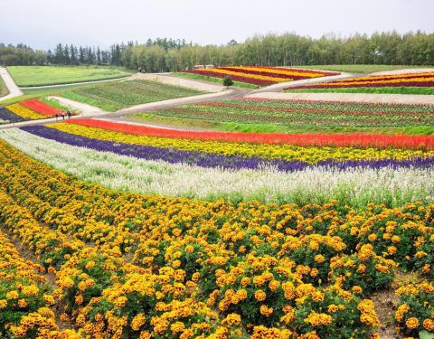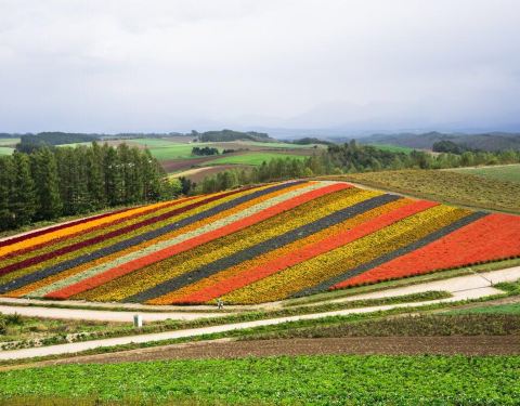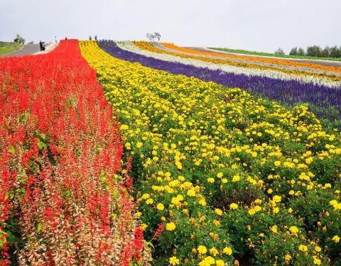菅野牧场其实就是那个四季彩之丘的所在地,这里夏季真的是美得惊人,不光是薰衣草这个富良野的特产,还有各种七彩的鲜花,他们拼成五彩的花卷,还有数量惊人的向日葵