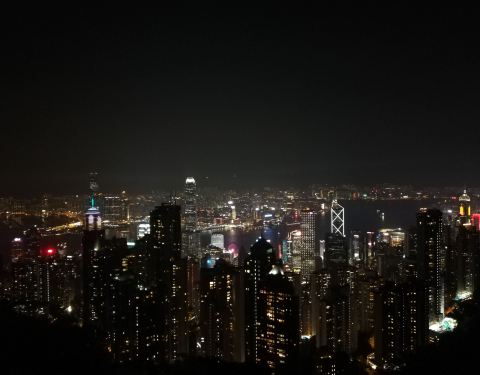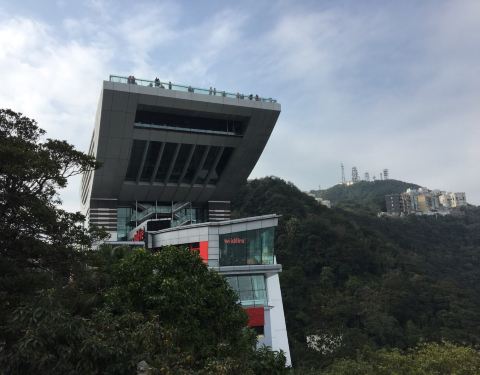 太平山顶上的一个观景台,凌霄阁的东面,地方不大,拍照的游客还是非常多的,可以俯瞰香港维多利亚湾,半山的许多豪宅,有的屋顶还有花园和游泳池。