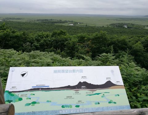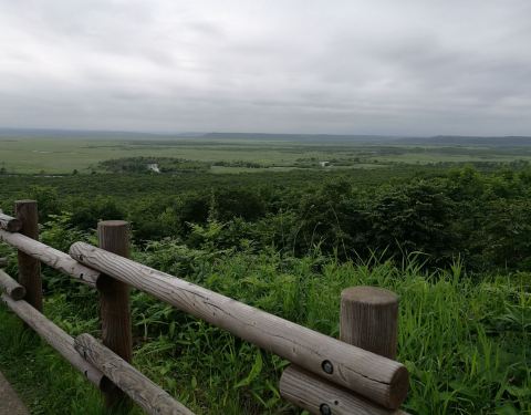 就算是夏天,站在平台上俯瞰整个钏路湿原还是感到了丝丝寒意,因为是相对高地,风非常的大,吹过来还是挺冷的,不過景色很好視野很開闊。这片湿原是北海道珍贵的自然资源之一,养育了许多的物種,包含每年來此的被阿伊努人称作湿原之神的丹顶鹤。不过因为風實在是很大且很冷,跟钏路湿原的牌子很快拍个照就走了哈哈