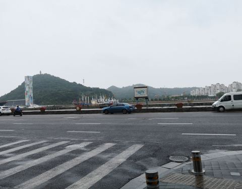 滨港路上行人不多,只有车辆来来往往,对面鲁家峙岛海洋文化创意园区的标志柱、滨港路上的海底隧道的...今天,微微下起了小雨,雨中的沈家门渔港显得空气清新,滨港路上行人不多,只有车辆来来往往,对面鲁家峙岛海洋文化创意园区的标志柱、滨港路上的海底隧道的入口仿佛在同一条线上。