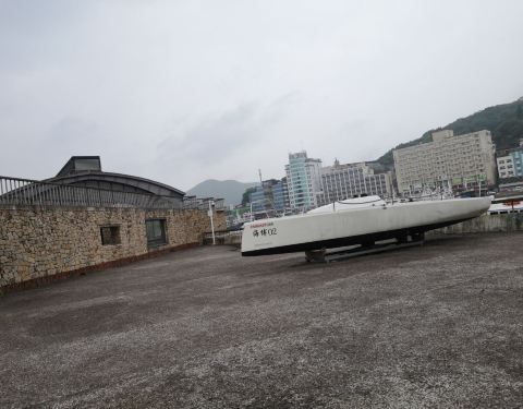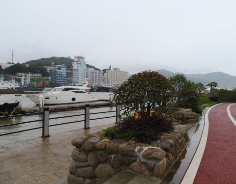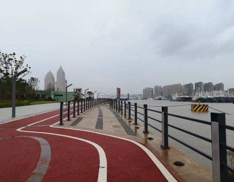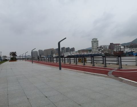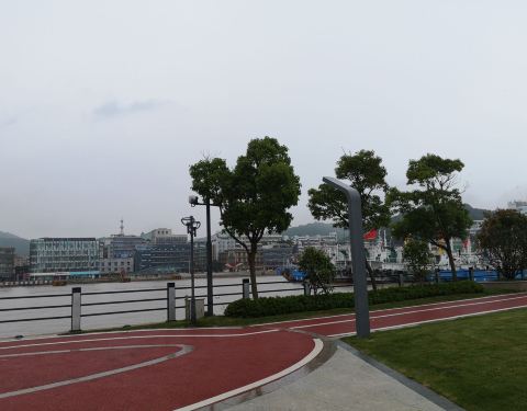 在舟山市沈家门渔港的鲁家峙岛的北边,对岸便是沈家门渔港的滨港路,隔海相望,近在咫尺,美丽的鲁家峙岛日新月异,沿海的步行道干净美观整洁,道旁的景观富有海岛特色。
