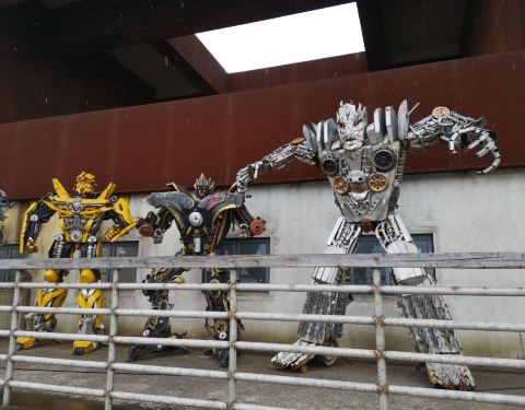 这里是舟山市普陀区沈家门渔港鲁家峙岛的文化创意园区,游客们在这里可以去"友情岁月"茶楼坐坐,也可以看看展示在园区内的那老式的三轮车和大型机器人。