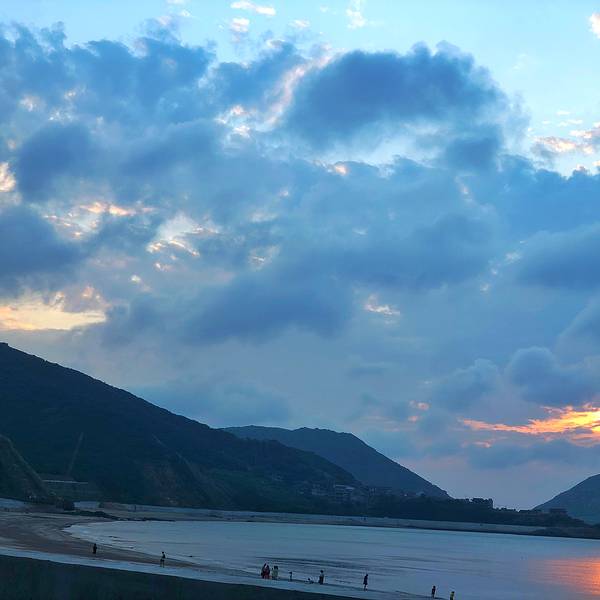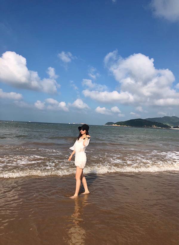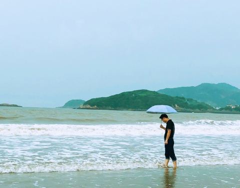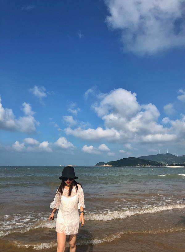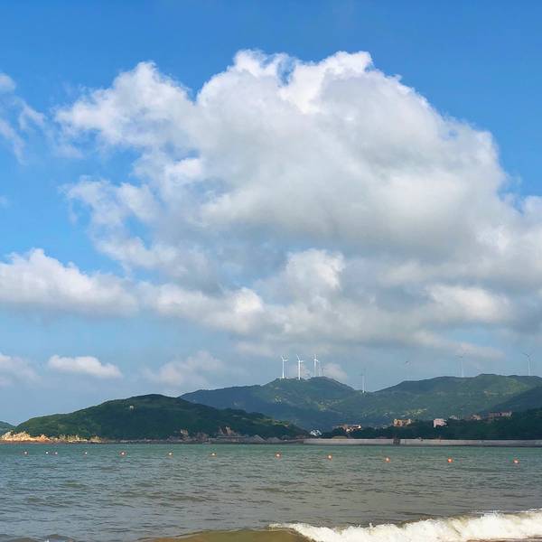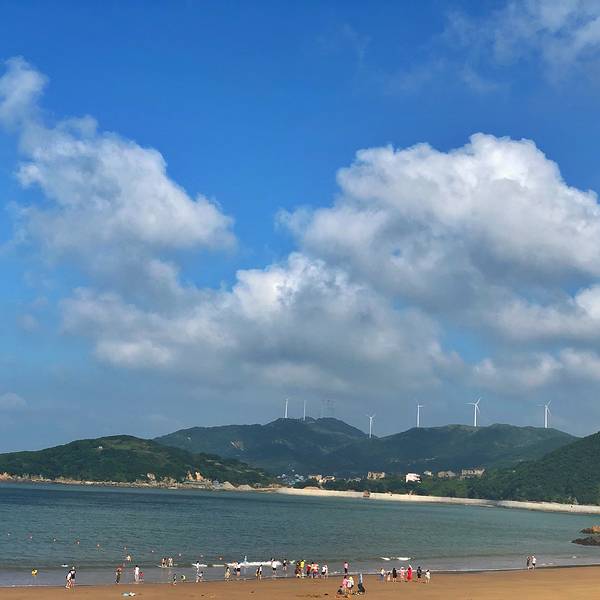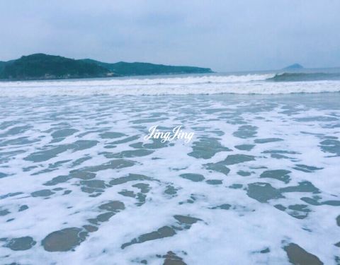 沙滩的沙子,细沙踩上去很舒服,很柔软,国内比较少见!夏天蓝天碧海,很适合游泳!台风的时候浪比较大,很壮观!