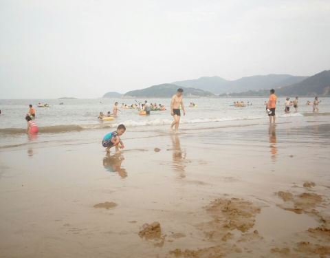 民宿条件中等偏下,300左右一晚,看了三家结果还是跑镇上去了,浅海的地方有小虫,能把人咬出血,支在海边的帐篷租一个50,有村民来收钱,冲一次脚3块,不收门票,沙滩上可以抓超小的螃蟹,