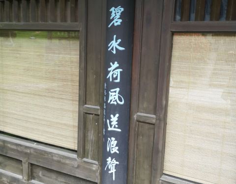这里是舟山市普陀区沈家门沈清园(沈院)的茶源轩,茶源轩门口那一幅对联为舟山市作家协会会员缪海平所作,"门外悠看池水绿"、“室中闲品佛茶香",此对联实在是妙啊!