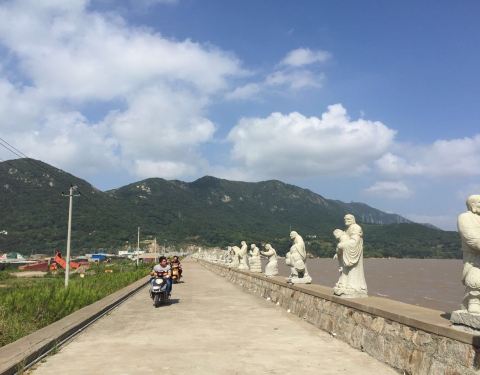 很喜欢的一个地方,因为人很少,环境又安静。沿海的长堤上有很多罗汉雕像,形态各异。在海边的一些礁石上也有罗汉石雕,更为传神,而且与大海相呼应。