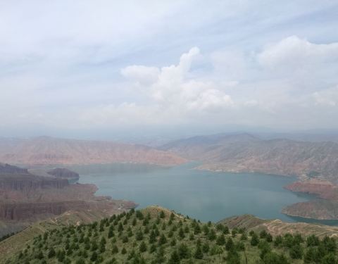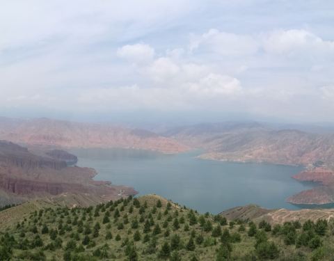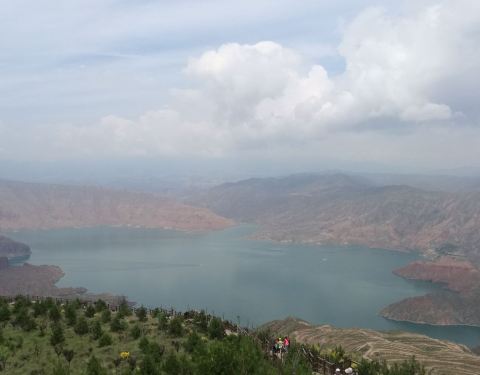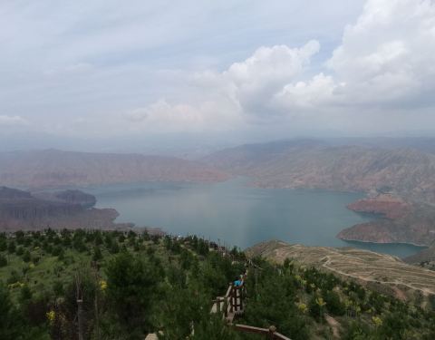 在去坎布拉国家森林公园路上经过,其实坎布拉国家森林公园是以李家峡大坝形成的黄河水库为中心,水库碧绿清澈,周围都是红色陡峭的丹霞地貌峰林,非常壮观。