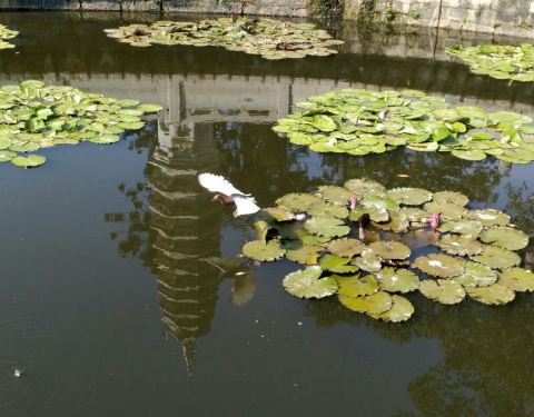 ...好大好大的一个广场池,旁边两个高塔,有很多的鸽子可以喂食嬉戏在那,每个生命都值得尊重,所以放生