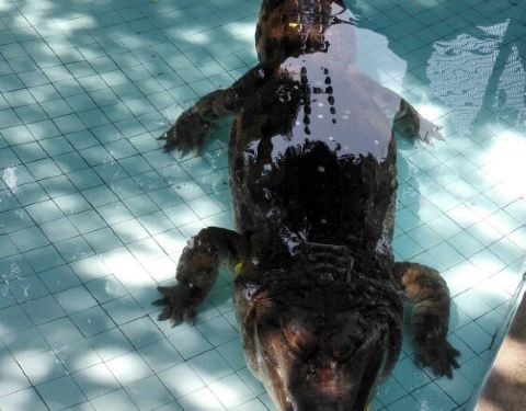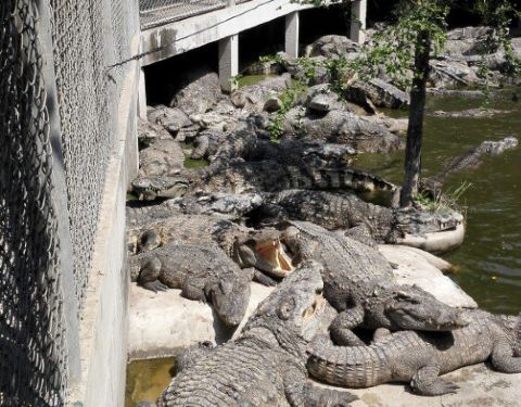...很多圈养的大小鳄鱼,而且数量特别多,这里可以花钱够买食物来为鳄鱼,也可以欣赏人和鳄鱼的互动表演