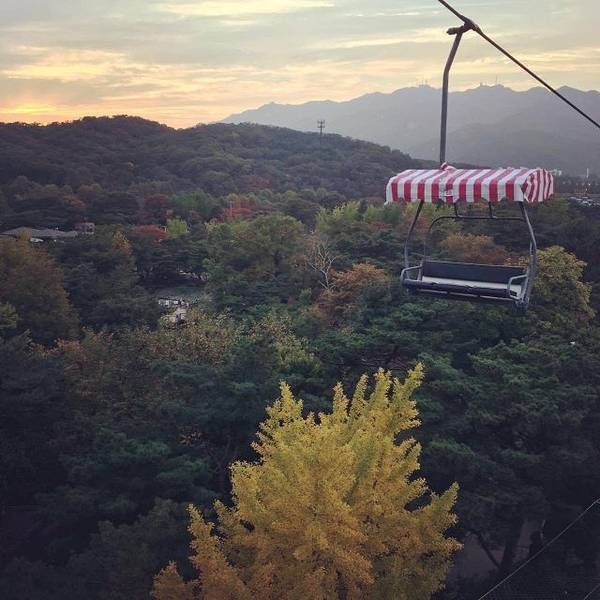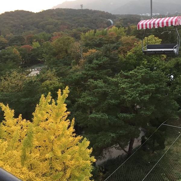 强烈推荐的一个景点 特别是秋天来很美 这里面主要由首尔世界游乐场还有首尔动物园组成 推荐大家来首尔动物园玩 在门口买好套票 很便宜 还可以坐索道 一路的景色都美的 可以看到远处山和人工湖 这边一般是韩国人周末携家带口来玩的地方 很不错