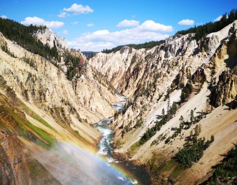 黄石河中非常精彩的一部分景观。整个黄石河的大峡谷还是非常壮观的,这里设有很棒的观景台,如果天气好的话还能看到彩虹。