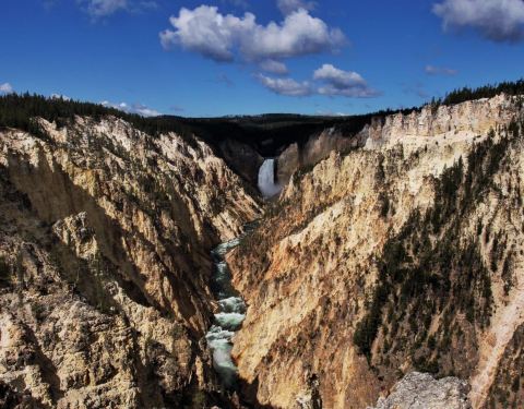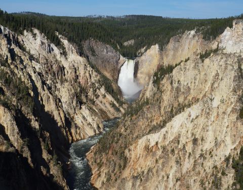 黄石国家公园里非常著名的一个景点,下瀑布是黄石河在大峡谷里倾泻而下行成的,它在落差很大,气势磅...