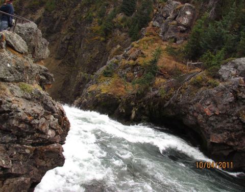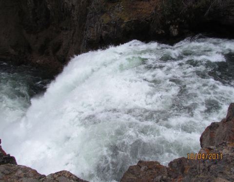 很壮观,我们走的是通往瀑布上方的步道,一直走到一个平台,可以俯瞰直泻而下的瀑布,以及黄石峡谷的...
