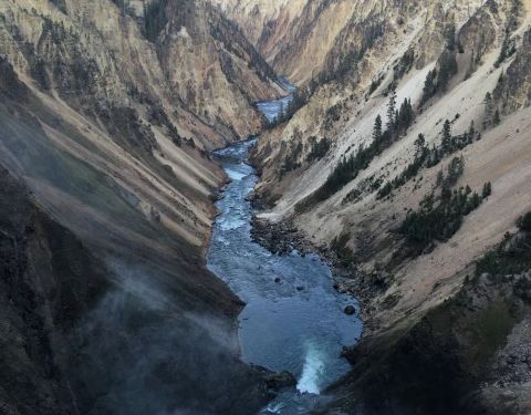 来黄石公园最不可错过的瀑布,瀑布有94米的巨大落差,水流非常多,极其壮观