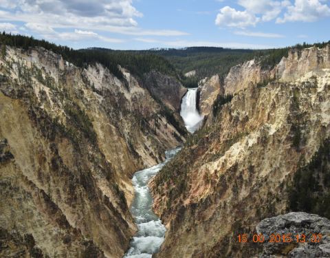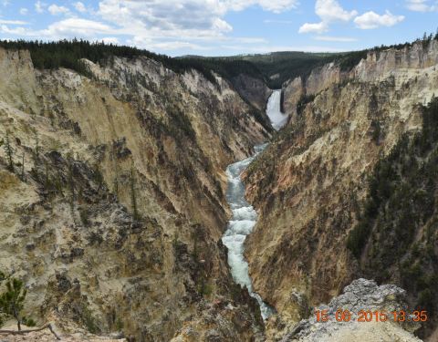 94米的落差,很壮观,我们走的是通往瀑布上方的步道,一直走到一个平台,可以俯瞰直泻而下的瀑布,以及黄石峡谷的风光,从停车场走到平台差不多30分钟足够了。