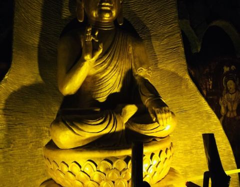 新疆喀什市叶城县锡提亚迷城景区,是畜牧业为主的叶城县为数不多的旅游景区之一,由上海市对口援建,迷城遗址是丝绸之路西域36国其中之一,有皇宫大殿、祭祀神坛、各种仿古建筑。目前最有观赏及历史韵味的是修在地下的一条时空隧道,通过时空之眼讲述丝绸之路发展史,西域诸国的文化概况。