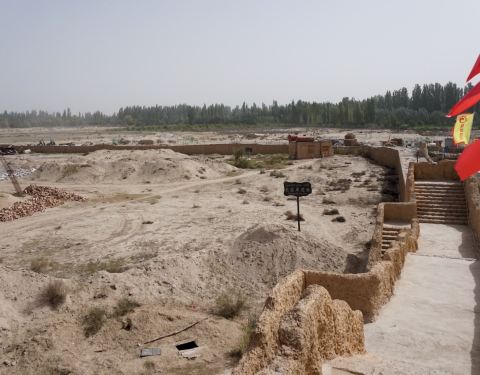 目前只能推测锡提亚遗址为唐宋时期,古城城垣均秃,城内随处可见陶片、瓷片、灰土、红烧土以及人骨等遗存,遗址内黄土台子或为墙或为墓群,复原后的遗址分为游览景区和保护区两部分。
