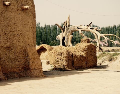 后面的古道我十几年前的梦里见过,只当是个梦,所以没在意,只是奇怪怎么摆些红枣核桃这些陪品,去年第一次去新疆,走到古道现场,很惊讶,瞬间记起那个梦