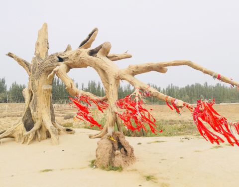所以没在意,只是奇怪怎么摆些红枣核桃这些陪品,去年第一次去新疆,走到古道现场,很惊讶,瞬间记起那个梦