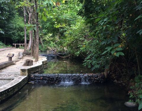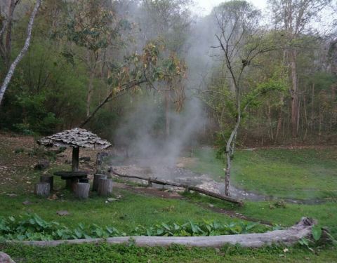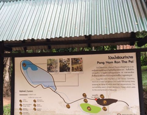 拜县温泉是个野外的天然温泉,下午快5点的时候进去,和售票员说一下,价格就会从300铢降到150就可以。因为还有1个小时就不让进了,不过野外温泉也不可以泡太长时间,一个小时足够了。泡的多是外国人。泉水就是自然从山上留下来的,阶梯状的池子一个个从上至下,越往下水的温度越低,边上也会有管子往每个池子里注水。因为是野外的嘛,水主要靠自洁,不要指望特别干净,树叶呀泥沙呀都有一些,多了点自然气息,少了些消毒水味。旁边有简易的冲淋设备,都是露天的