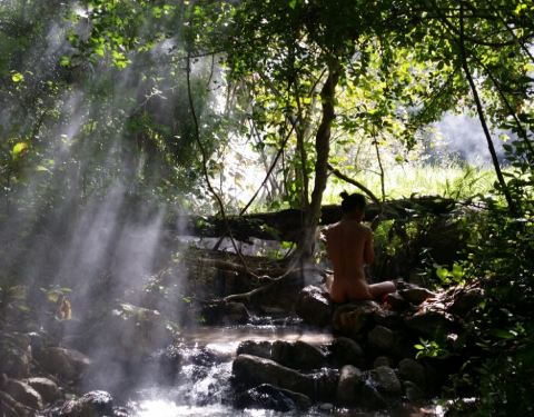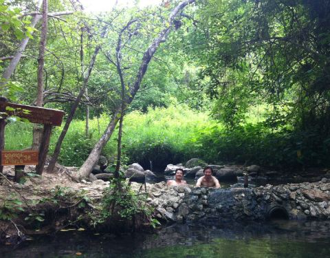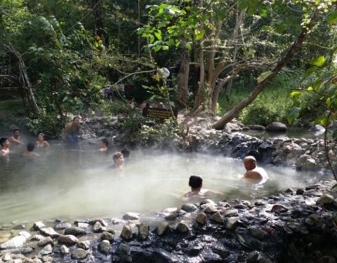 外国人300b每人的门票 当地人优惠些 深山老林里的天然流动水温泉 看着像一条小溪 越往深处温泉温度越高 35度泡着浑身冒汗 当地许多人带着小孩子来这里交游泡汤 穿着衣服就下去了 拜县周遭就这个景点最实用