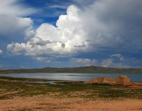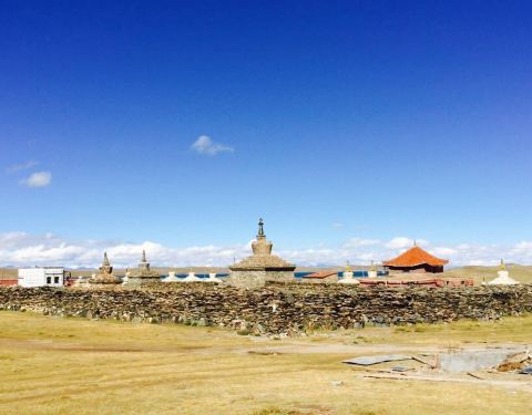 扎陵湖南岸有行馆遗址离玛多县城100公里,鄂陵湖和扎陵湖相距20公里,周围有大小湖泊百多个,大小河流众多,是继青海湖的又一个鸟类王国。扎陵湖南岸有行馆遗址。