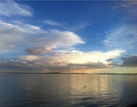 是自然纯粹的美,建议在湖边看日出,水天一色,在厚重云层的缝隙中透出万丈光芒,美的不要不要的,但...