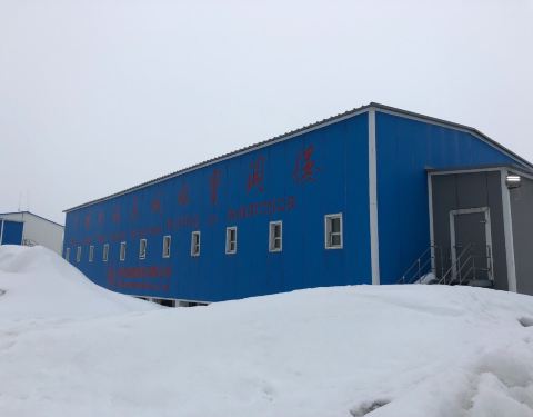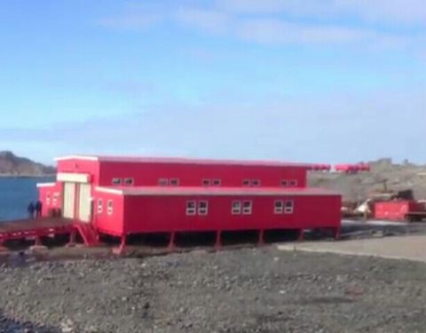 中国南极科考站位于南极著名的半月岛上,主体建筑是蓝色,分为好几个区域