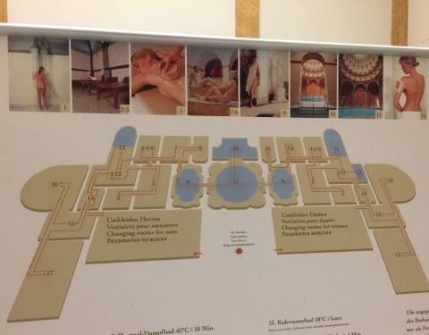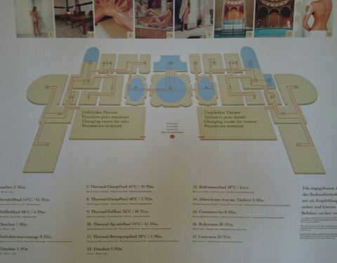 池子有温水也有冷泉,还有一大一小两个带按摩功能的温泉。内部不能拍照,出入和锁储物柜都需要刷计时腕带这个浴场是要求天体入浴,是不可以穿泳衣的,除了周一、周四、周六是男女分浴外,其它日子是男女混浴。早上九点开到晚上十点,至少提前两小时入场。最基础的入浴票25欧一人,最多能待上3小时,给了腕带开始计时,...这个浴场是要求天体入浴,是不可以穿泳衣的,除了周一、周四、周六是男女分浴外,其它日子是男女混浴。早上九点开到晚上十点,至少提前两小时入场。最基础的入浴票25欧一人,最多能待上3小时,给了腕带开始计时,包括穿脱衣服的时间。内部不能拍照,出入和锁储物柜都需要刷计时腕带。 进浴场内共经历17个steps,其中池子大约7个左右,记得按照房间里提示的入浴顺序来。池子有温水也有冷泉,还有一大一小两个带按摩功能的温泉。一个桑拿房比较有特色,是保留了150年前原理的传统桑拿。全部泡完澡还要体验热毛巾的包裹、涂抹身体乳和躺在躺椅上放松三个后续步骤,在休息室还能喝一杯热茶。 展开