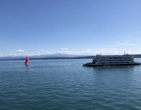 坐摆渡船时拍了两张博登湖的照片,到了城中的一家中国餐馆,老板告诉我们:这座城二战中免于战火,所以许多建筑都有六百多年的历史。