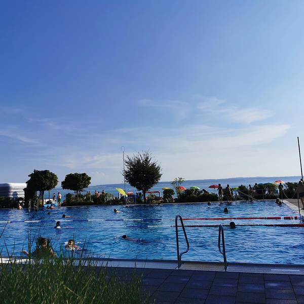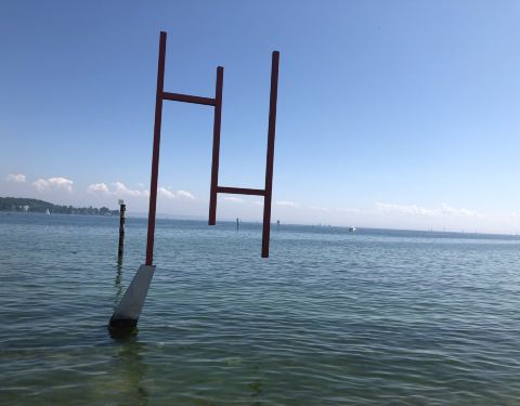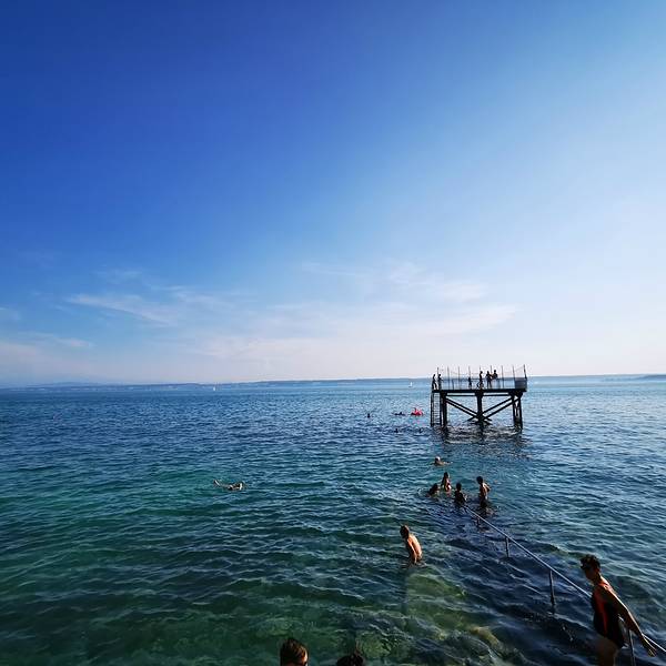 已经连续赶路两日的我们今天放弃了原本计划的树顶栈道和维斯教堂(世界遗产),直奔博登湖畔小镇Meersburg, 把4小只交给男人们,放进湖边的社区泳场扑腾得乐不可支,而我们闺蜜3人临湖漫步,悠然自得~此行很不好彩遇到欧洲百年不遇的最高温,真真是差点要被热熟了…… 第二天下午跟风地去泳场玩耍,胆子肥怂恿大家跟我一起去湖面玩高台跳水,3米的高台啊~~~~~ 差点没把自己给溺死之余,还差点把谢先森也整死了…… 💀三米湖面高台四年前在瑞士施泰因游玩的时候,我们就住在对面的博登湖畔,时光冉冉, 甚是想念那美如画的小镇,希望以后还能再回去看看~同一时间我们另一位好友就在彼岸的瑞士圣加仑 😂波光粼粼的湖面,有没有被美到?~