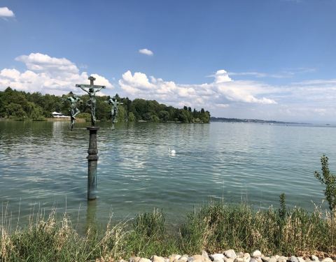博登湖,德语区最大的内陆淡水湖。晚上宿在的这座湖滨小镇,并不是什么风景名胜,没有康斯坦茨、林道的大名鼎鼎,也多了许多难得的宁静。沿着湖滨漫步,在结满果实的葡萄园闲逛,发现一座令人惊艳的18世纪巴洛克教堂,坐在石阶上,等待夕阳滑向山的背面,散射的阳光将湖面和天际尽染