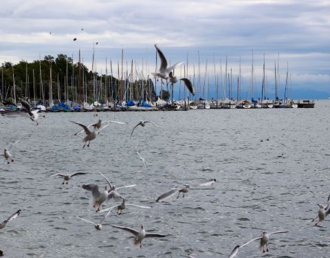 湖上停泊着好几艘游轮,看来也是邻国人民的度假好去处近德国边境,左边与奥地利相邻,右边与瑞士接壤,是一个重要的港口城市。湖上停泊着好几艘游轮,看来也是邻国人民的度假好去处