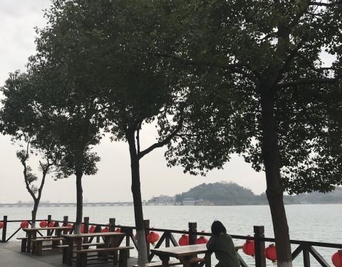 天目湖边的状元阁是游湖休憩的好地方,累了就坐一坐,吹吹凉风