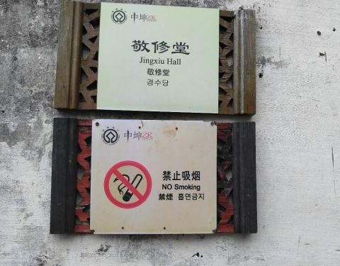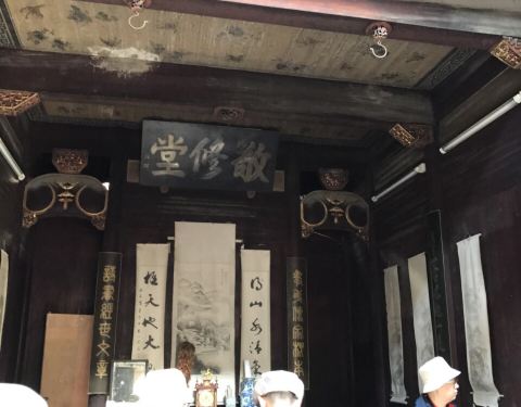 敬修堂在月沼的边上。导游在前面介绍了点东西,但是听不清楚也想不起来了敬修堂在月沼的边上。是大户人家的房子。房间里有篆文的对联,读不出来,不知道说的啥东西。导游在前面介绍了点东西,但是听不清楚也想不起来了。是典型的徽派建筑。老房子,一桌一椅,每一款门板都有故事的。