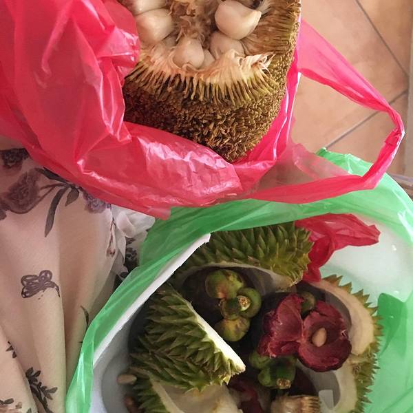 一个人买了一个榴莲,一斤山竹还有一个不知明的水果,甜甜的很好吃做了午餐。价格较国内美丽很多